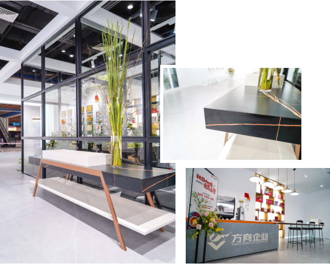 巖板定制也是方向企業(yè)幸福家居生活館中的一大亮點,打破家居場景的邊界,多角度演繹產(chǎn)品的藝術美學和無限創(chuàng)意,這不僅體現(xiàn)了公司在巖板領域的創(chuàng)新設計能力,也反映了公司在巖板應用加工領域的探索和研究。