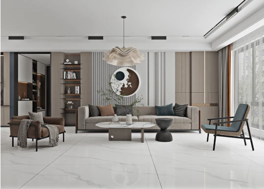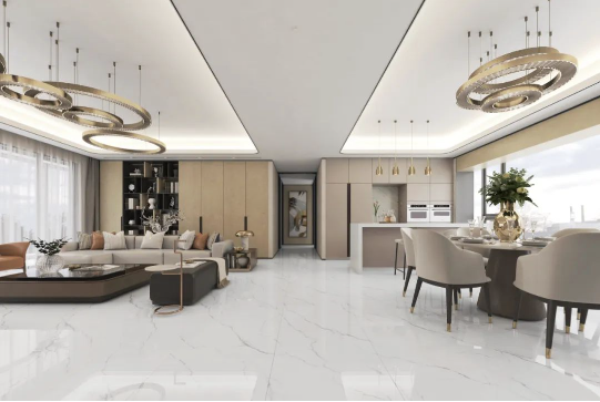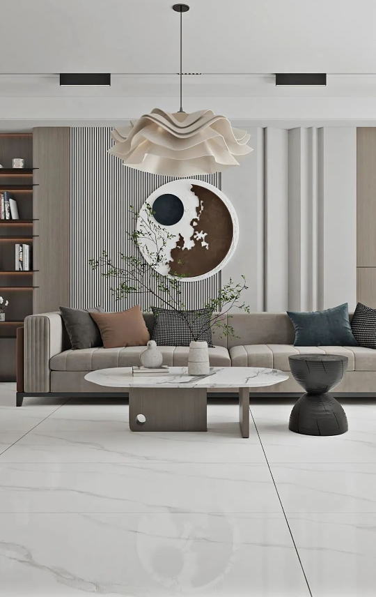 地面以充滿飄逸美感的達(dá)拉斯白進(jìn)行通鋪,如玉的潤澤,高雅的氣息,仿佛置身于靜謐的時空里,靜享歲月安然,盡顯空間之美。