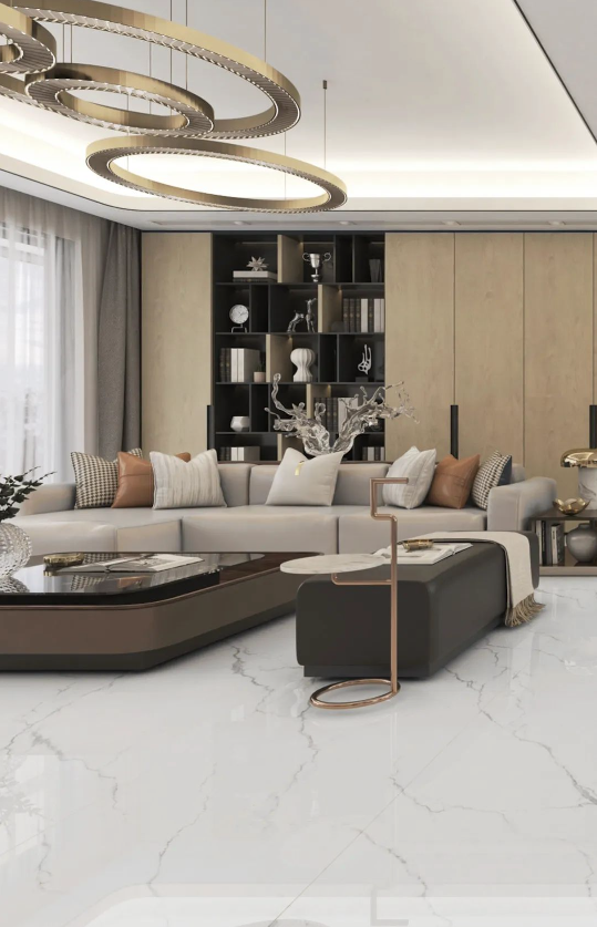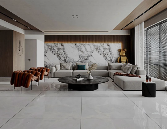 弱化家居框架的拘束,無限連紋設(shè)計突破瓷磚的尺寸界限。銀沙灰紋理自然銜接,使整體空間更具視覺張力,大大地提升家居美感與藝術(shù)氣質(zhì)。