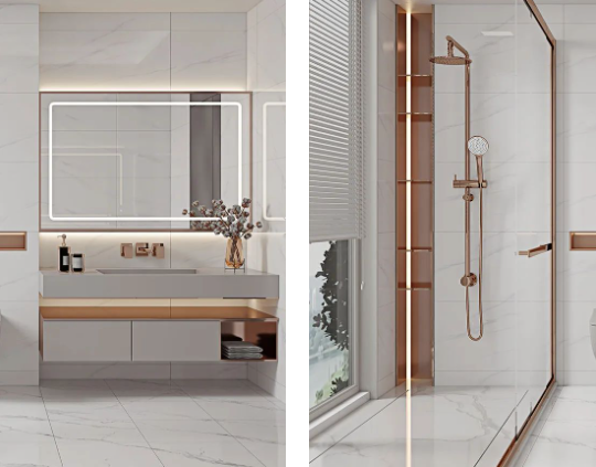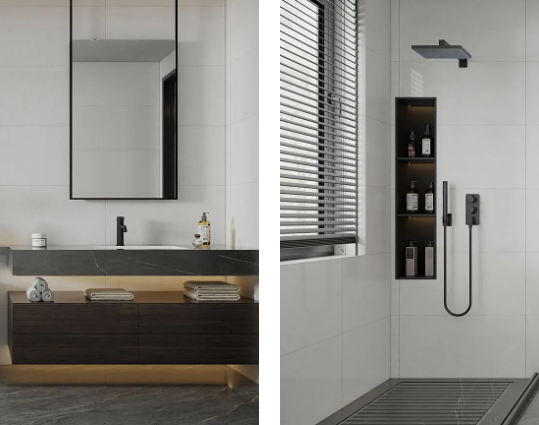 暖色系的浴室,低飽和度的色溫,克羅伊淺灰色調余韻深遠,上墻應用更溫暖,拂走雜亂思緒,令用戶心安,提升衛(wèi)浴空間的和諧性與美觀性。
