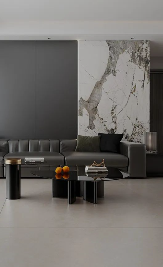 750X1500mm黃金規(guī)格,結(jié)合柔和暖灰延伸空間的視覺感同時,將客廳設(shè)計與美好自然組合,復(fù)刻原石經(jīng)歷歲月后的真實肌理,為空間營造輕松治愈的舒適氛圍。