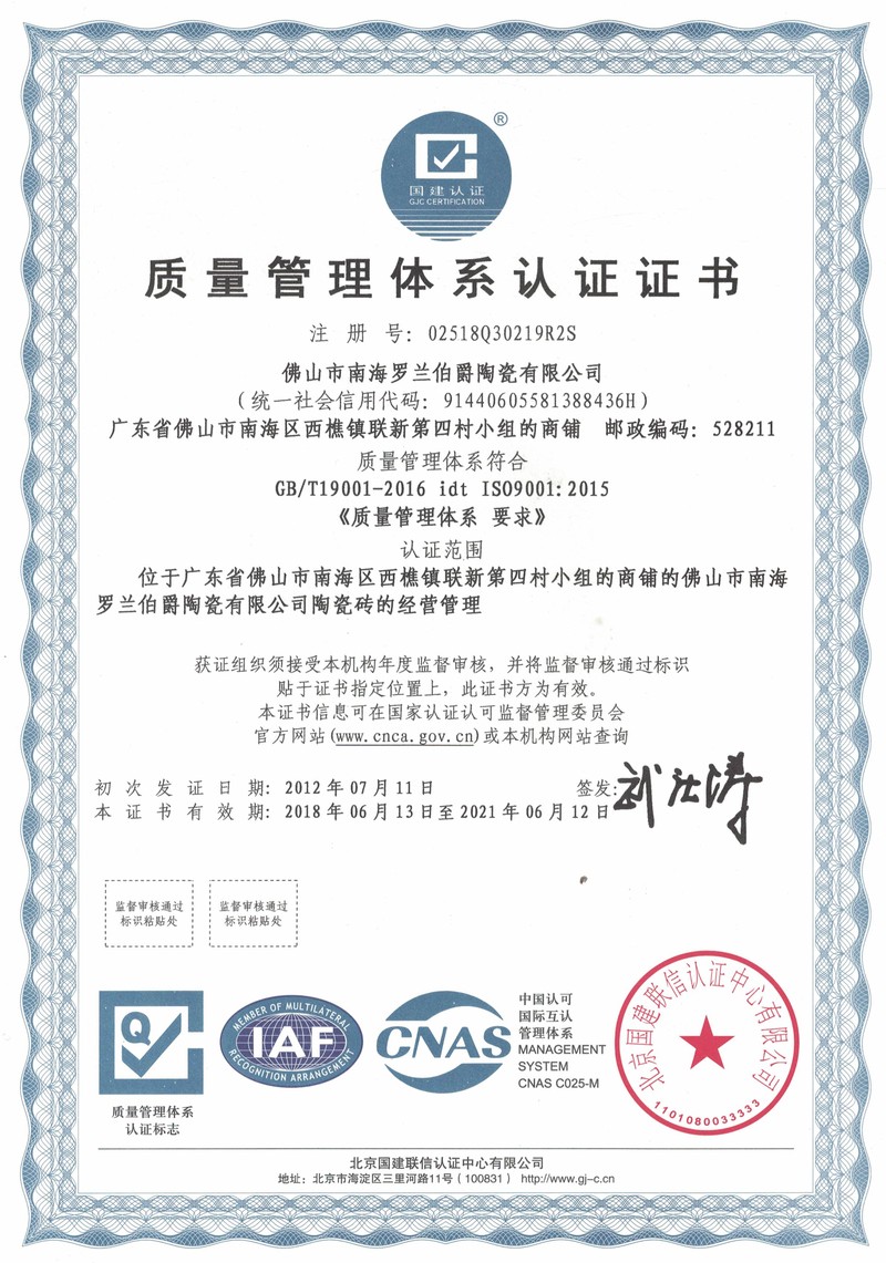 羅蘭伯爵公司ISO質(zhì)量管理體系認(rèn)證證書