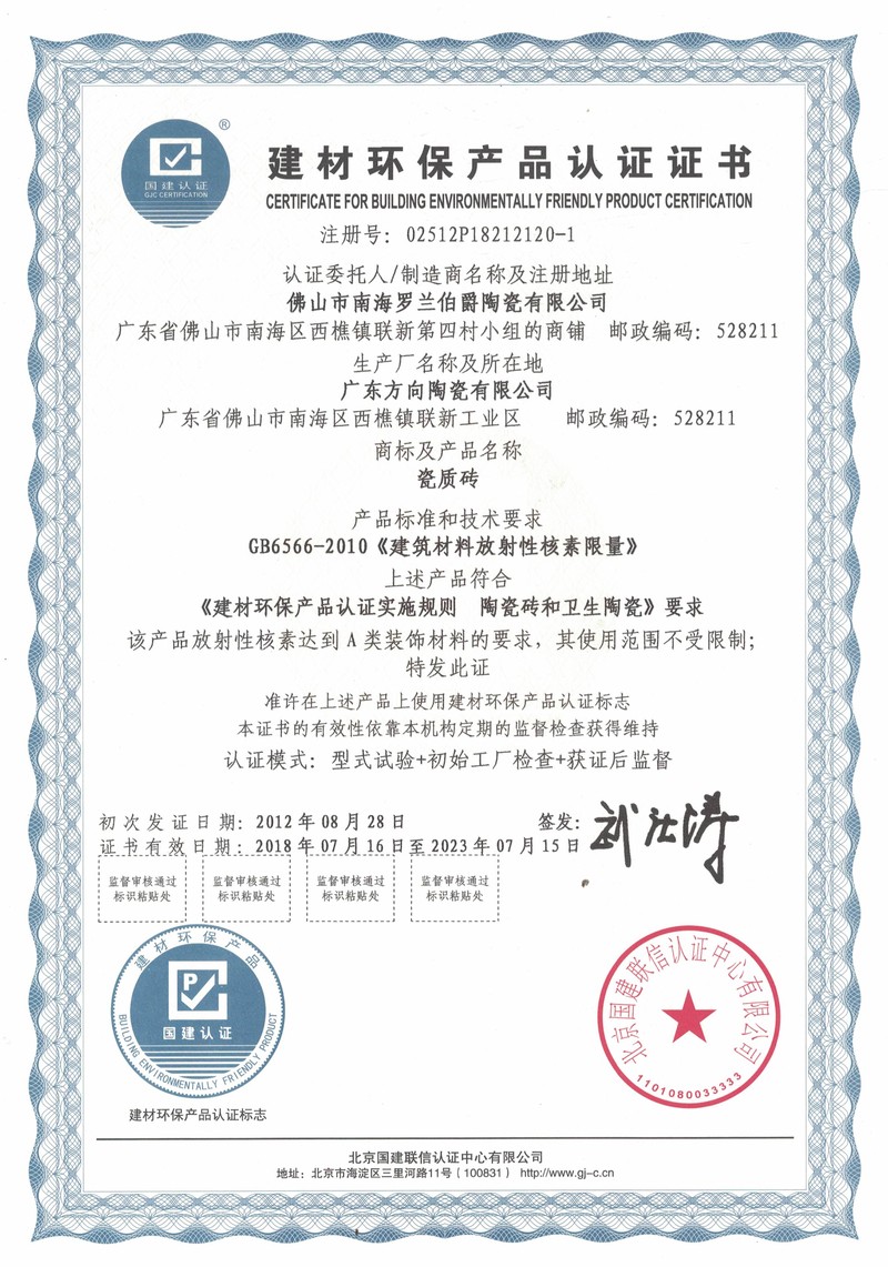 羅蘭伯爵公司建材環(huán)保認(rèn)證證書